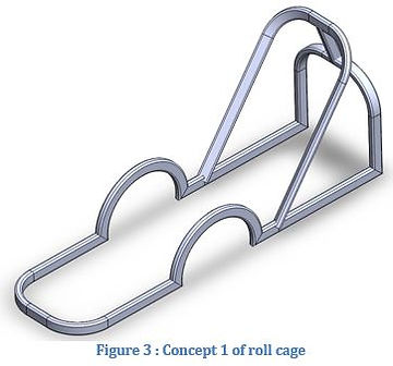 The final concept is very simple. The concept of the roll cage is vertical placed near the shoulder area of an average rider. This concept requires the least manufacturing among the concepts discussed for the roll cage. It would also cost less to manufacture and weighs less. Figure 5 shows the front view of the concept 3.